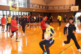 当日は中学生113人を対象に、選手8名とOBの3人により