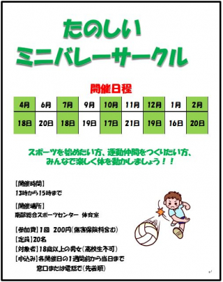参加者でミニバレーを通じて楽しく運動をしましょう!