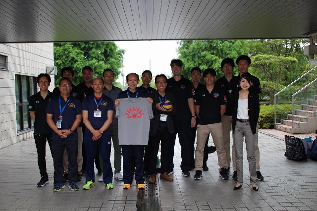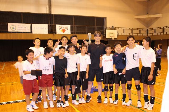 サントリーサンバーズ選手3名(大宅真樹選手・鳥飼亜斗夢選手・佐藤謙次選手)・荻野監督、サンバーズスタッフ4名で教室がおこなわれました。