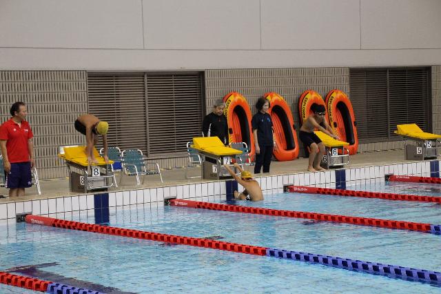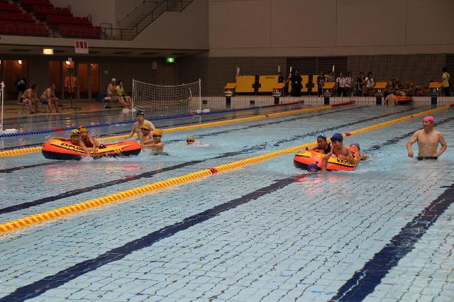 このイベントでは50mタイムチャレンジ、飛び込み体験、ウォータービーチボールバレー&ゴムボートレースの4種目行いました。