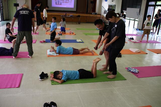 令和元年10月5日(土)に大江公民館からの依頼を受け、大江公民館大ホールで砂取小学校家庭教育学級の親子を対象に足の発育・発達に関する講話と外反母趾や浮指といった症状を予防・改善する運動講座をおこない24名の参加がありました。