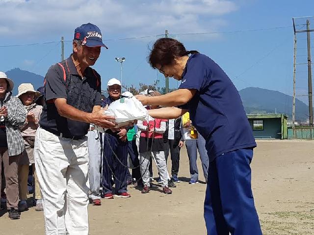 グラウンドゴルフ大会、ゲートボール大会共に上位入賞者等に