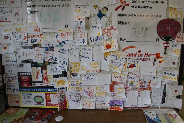 (ラグビーワールドカップの開催が近かったため、ラグビーの応援メッセージも書いてくださる方もいらっしゃいました。※10/14~10/31現在も掲示中です)
