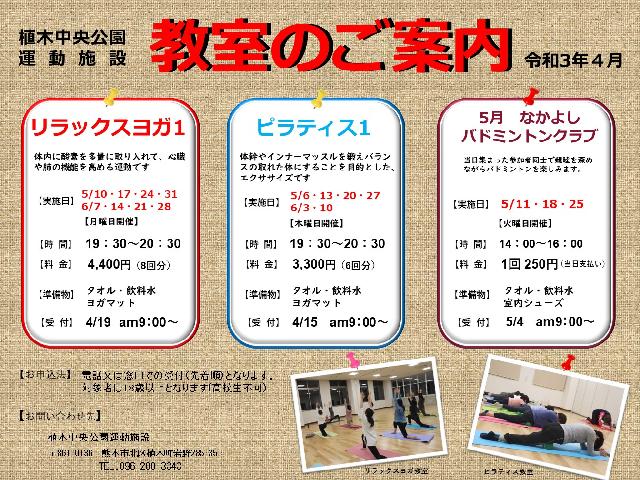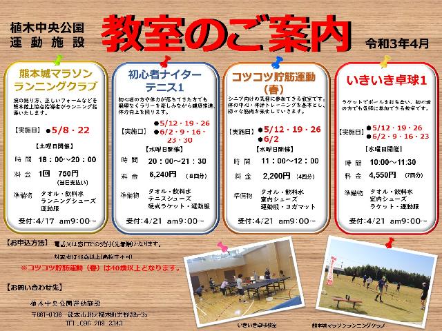 植木中央公園運動施設【令和3年度 教室ご案内】