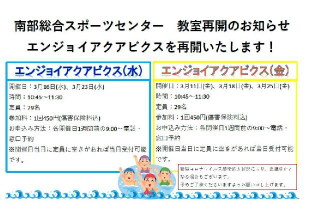 【南部総合スポーツセンター】エンジョイアクアビクス再開のお知らせ