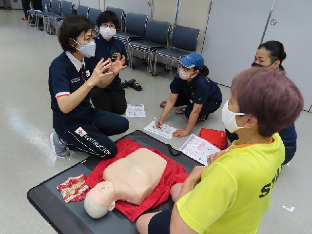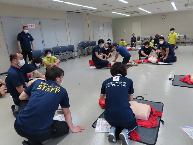 一時救命措置として、心肺蘇生法とAEDの訓練を行いました。