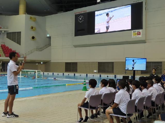 水球日本代表の皆さんと市内の小学生の交流事業が行われました。