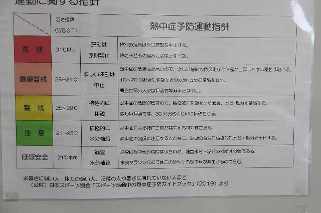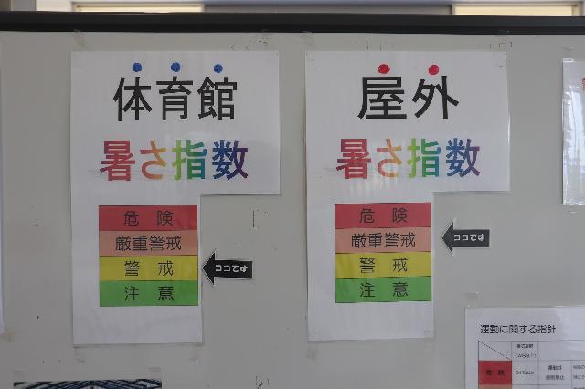 当施設では、施設放送で当日の熱中症警戒状況について周知したり、施設出入口に暑さ指針を更新して掲示しておりますので、ぜひ参考にされてくださいね(^^♪