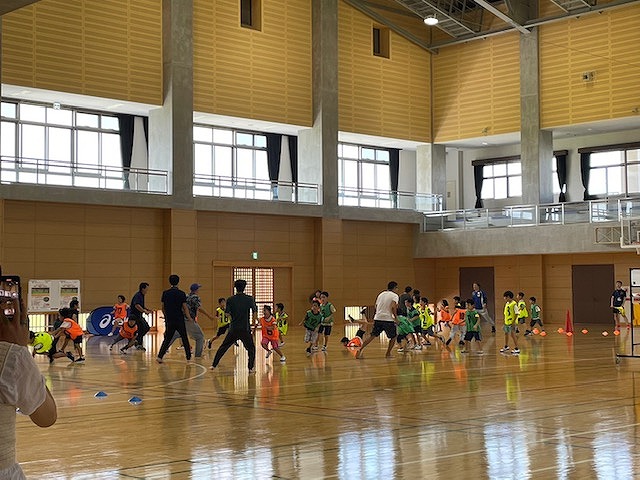 大人チームは子どもチームに負けまいと、子どもより真剣な表情で試合が始まる前から準備運動をするなど、大人チームの方が本気で戦っていました。最初は大人チームが先制したものの最後まで元気いっぱいの子どもチームが追いつき、結果は7対7の引き分けとなりました。鬼ごっこをする中で、「他の学校の子どもたちと仲良くなってとても楽しく参加できました」「ぜひまたスポーツ鬼ごっこをしてください」「久しぶりに運動ができました」「親子で楽しい時間を過ごせました」など嬉しいご感想をいただき、参加賞のお菓子の詰め合わせも子どもたちに喜んでいただきました♪