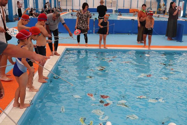 熊本市城南B&G海洋センターでは水球体験、SUP体験が行われました。