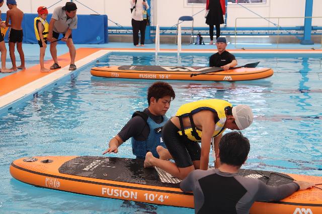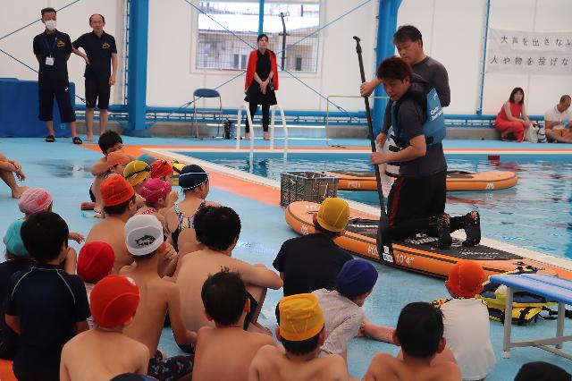 熊本市城南B&G海洋センターでは水球体験、SUP体験が行われました。