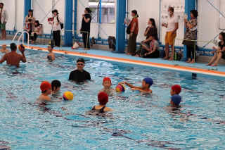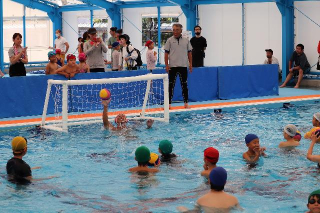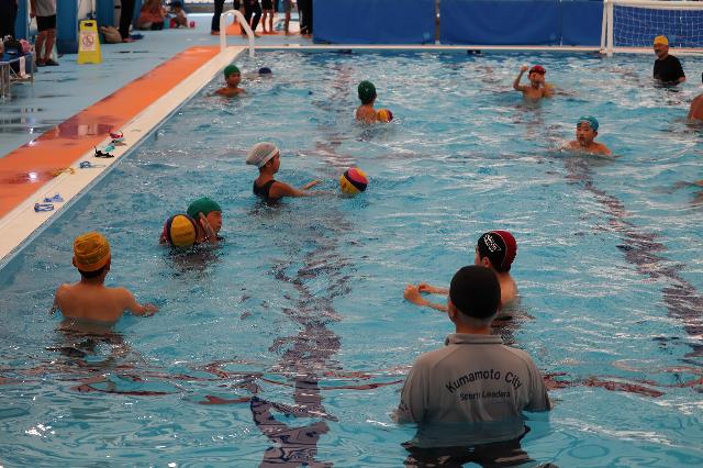 熊本市城南B&G海洋センターでは水球体験、SUP体験が行われました。