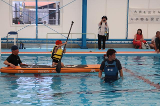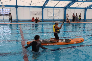 熊本市城南B&G海洋センターでは水球体験、SUP体験が行われました。