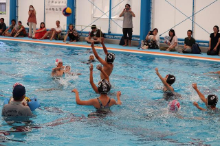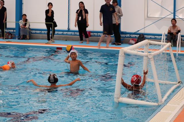 熊本市城南B&G海洋センターでは水球体験、SUP体験が行われました。
