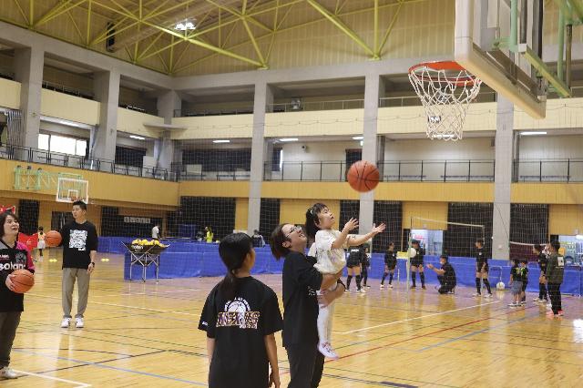 屋内では、「モルック」の他にも、「バスケットボール」、「ハンドボールを使ったボール遊び」、「バレーボール」、「卓球」、「バドミントン」、B&Gで「剣道」の計7種目の体験会を行いました。