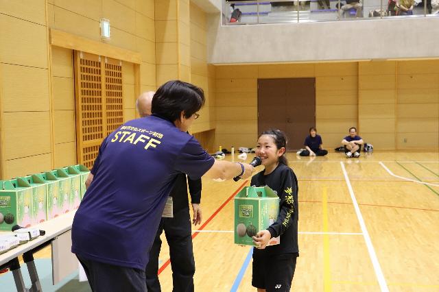 試合終了後には、カゴの中にシャトルを入れると「お菓子」や「ジュース」をもらえるミニゲームもあり、とても盛り上がっていました。