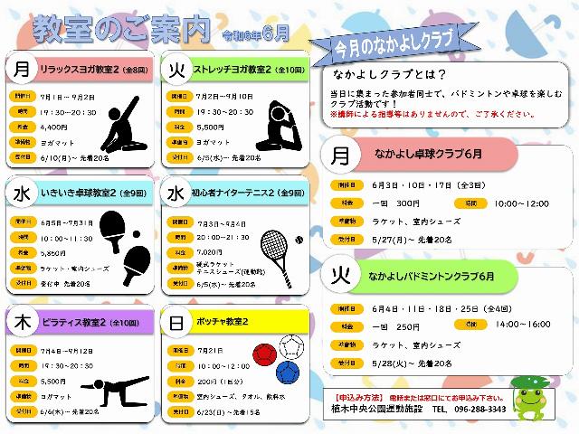 植木中央公園運動施設「教室のご案内6月」