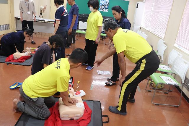 心臓マッサージの方法やAED(自動体外式除細動器)を用いた救急法について講習を行いました。