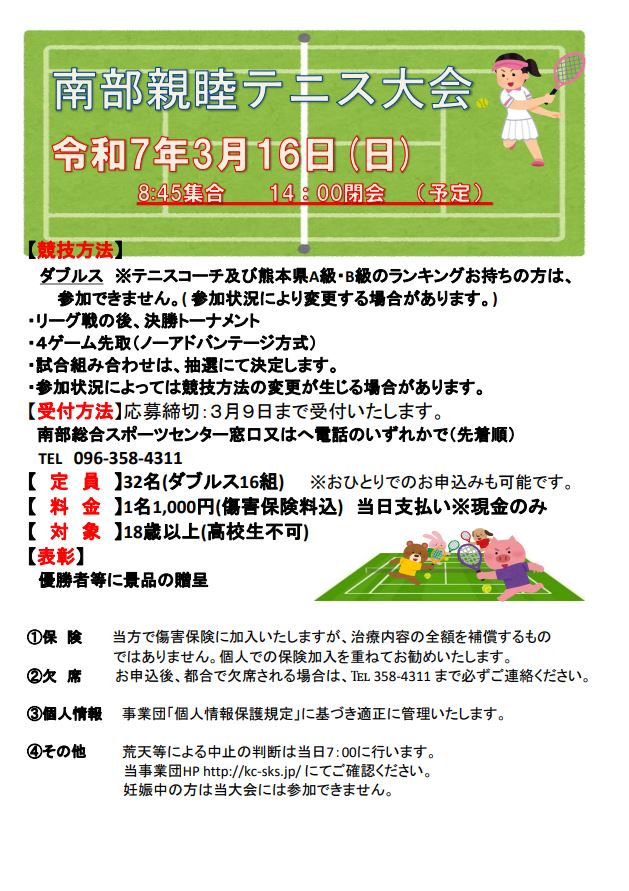 【3/16(日)】南部親睦テニス大会