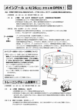 メインプール4/26(土)18時オープン
