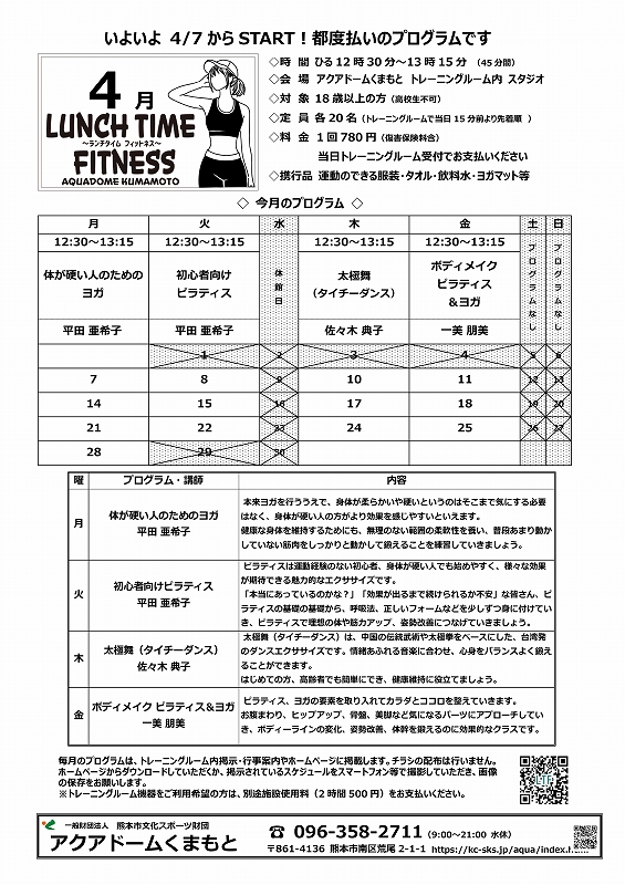 「ランチタイムフィットネス」4月スケジュールのご案内