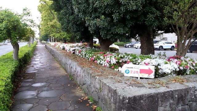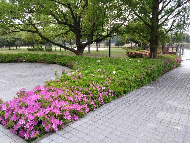 駐車場、通路からジョギングコースまで各所に色とりどり咲きます。