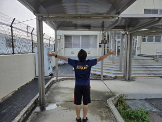 城南B&G海洋センターでは、熱中症対策の一つとして、プール横の自動販売機付近通路にミストシャワーを設置いたしました。