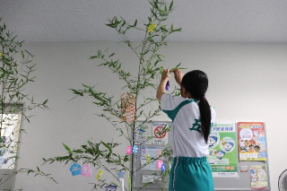 今年も7月5日~7月9日の間、体育館ロビーに笹と短冊を設置しました。