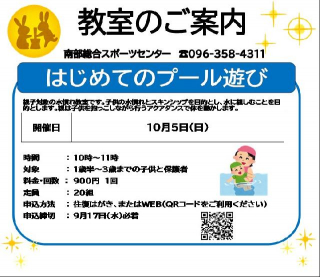 10/5(日)に親子で一緒に参加できる【はじめてのプール遊び】教室を行います。
