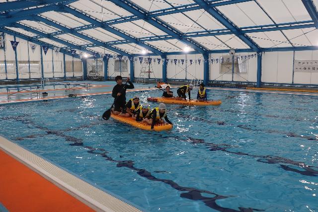 当日は、紙芝居によるSUPの説明やライフジャケットを着用しての背浮きなどを学びます。