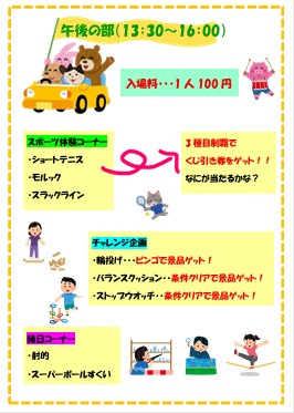 午後からはスポーツ体験・縁日・チャレンジ企画を行います。