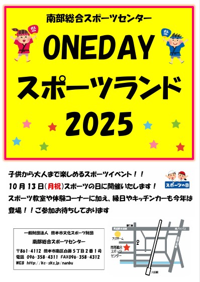 本日は、10月13日(月)に開催いたします【ONEDAYスポーツランド2025 in 南部】のご案内です。