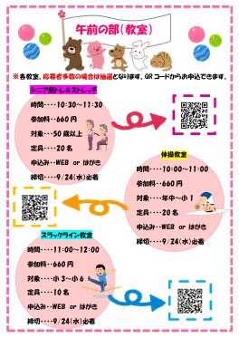 午前中は親睦大会と子供向け・シニア向けの教室を行います。
