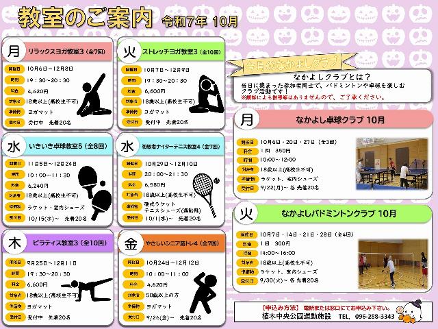 植木中央公園運動施設「教室のご案内10月」