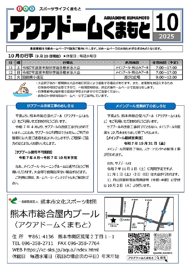 「スポーツライフくまもと」アクアドーム版 10月号を発行しました。