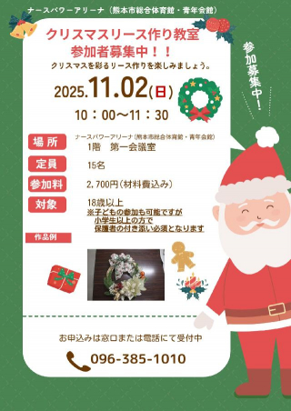 11月2日開催!クリスマスリース作り教室参加者募集のお知らせ