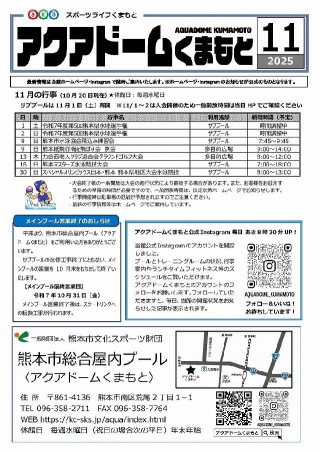 「スポーツライフくまもと」アクアドーム版 11月号を発行しました。