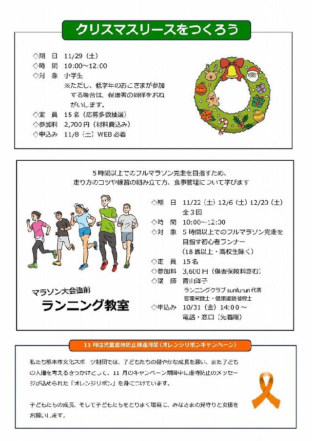 10月号で予告していましたランニング教室の詳細や