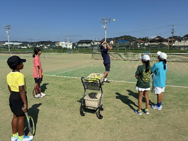 テニスコートで「小学生テニス練習会(強化クラス)」を行いました。