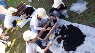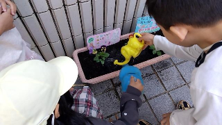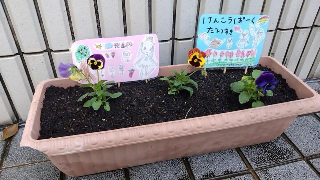 子供たちが一生懸命にプランターに土を入れ花を植えてくれました。