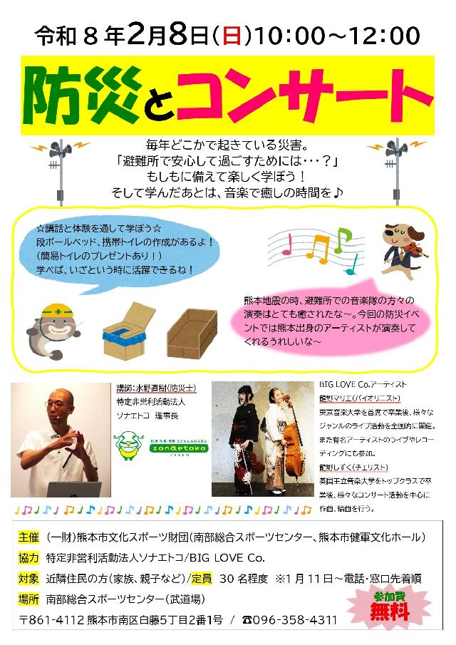 2/8(日)に【防災とコンサート】を開催いたします。