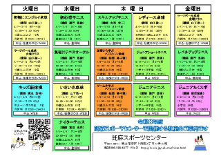 お申し込みは、「往復はがき」「WEB」、テニス教室は「登録制」